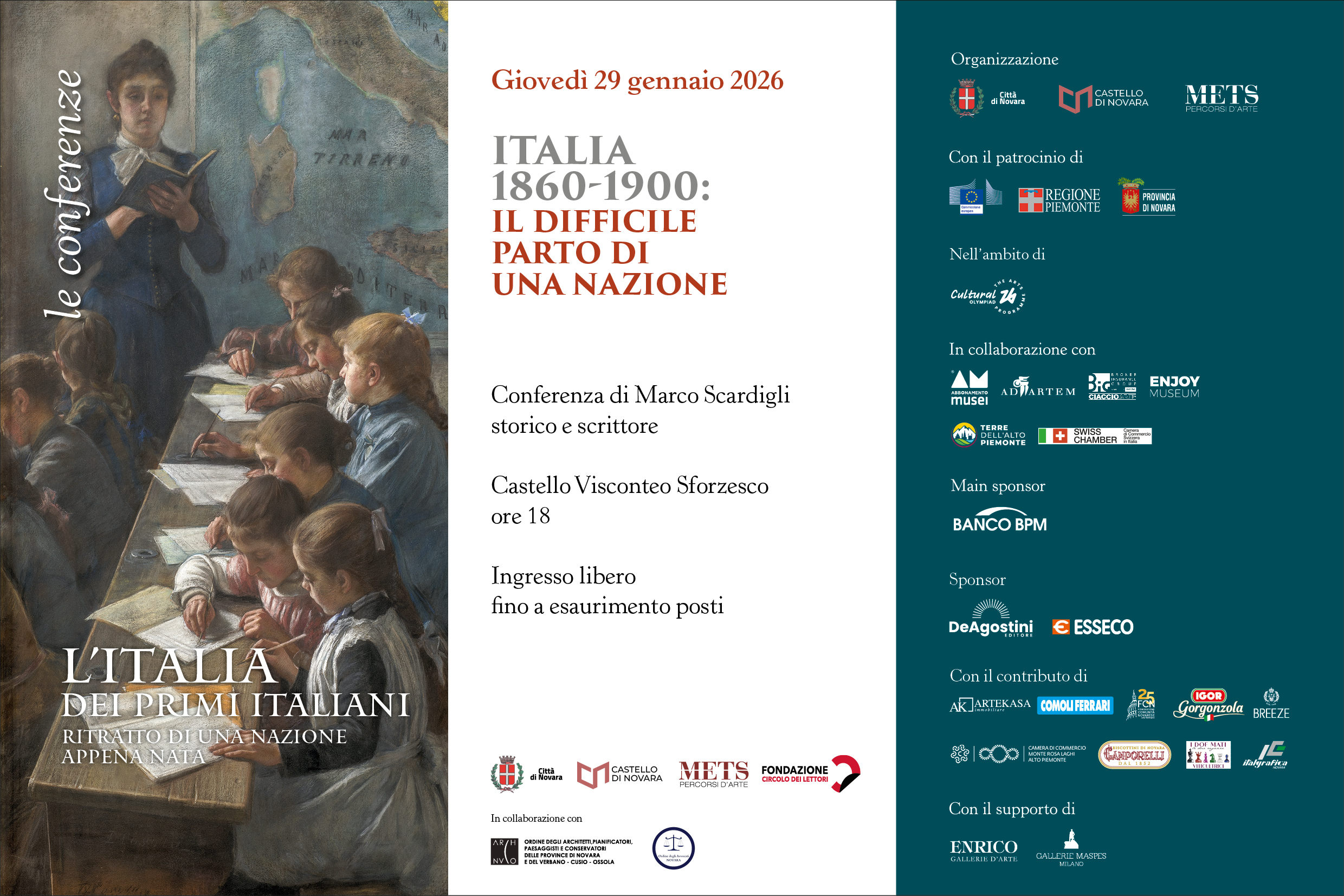 ITALIA 1860-1900: IL DIFFICILE PARTO DI UNA NAZIONE Castello di Novara Il giorno 29-01-2026 alle ore 18:00 Visualizza Evento