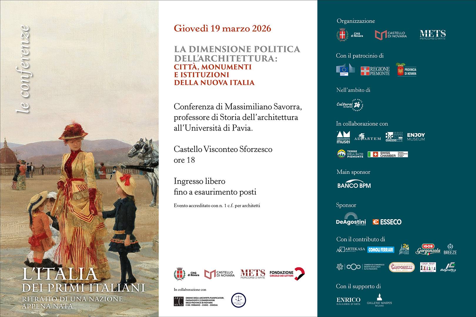 LA DIMENSIONE POLITICA DELL’ARCHITETTURA: CITTÀ, MONUMENTI E ISTITUZIONI DELLA NUOVA ITALIA Castello di Novara Il giorno 19-03-2026 alle ore 18:00 Visualizza Evento
